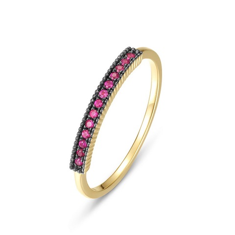 Anello da donna in oro 14K stile giapponese con Design rettangolare geometrico retrò stile corindone rosso Luxury Strip zircone pistola nera classica