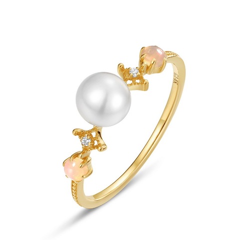 Anello Vintage giapponese placcato in oro 14K luce di lusso naturale opale perla d'acqua dolce retrò moda gioielli stile alla moda per le donne